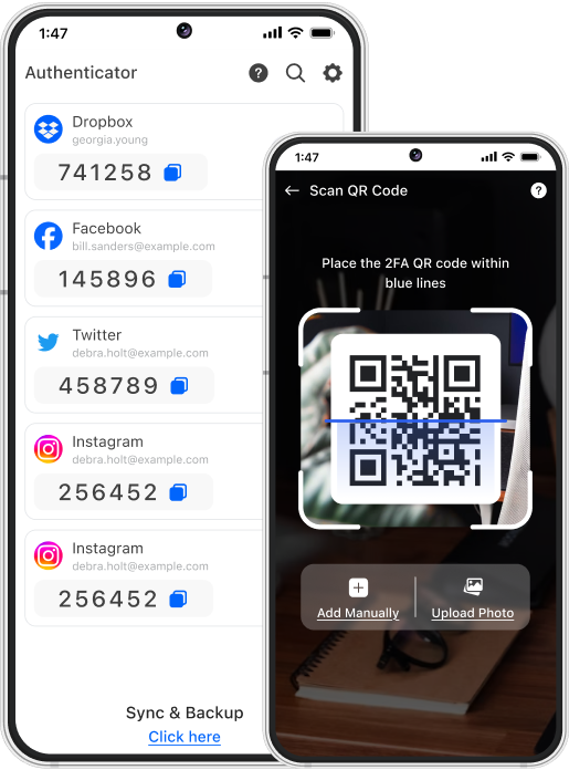 Secure your accounts with unique, time-sensitive codes and set them up effortlessly using seamless QR code scanning.